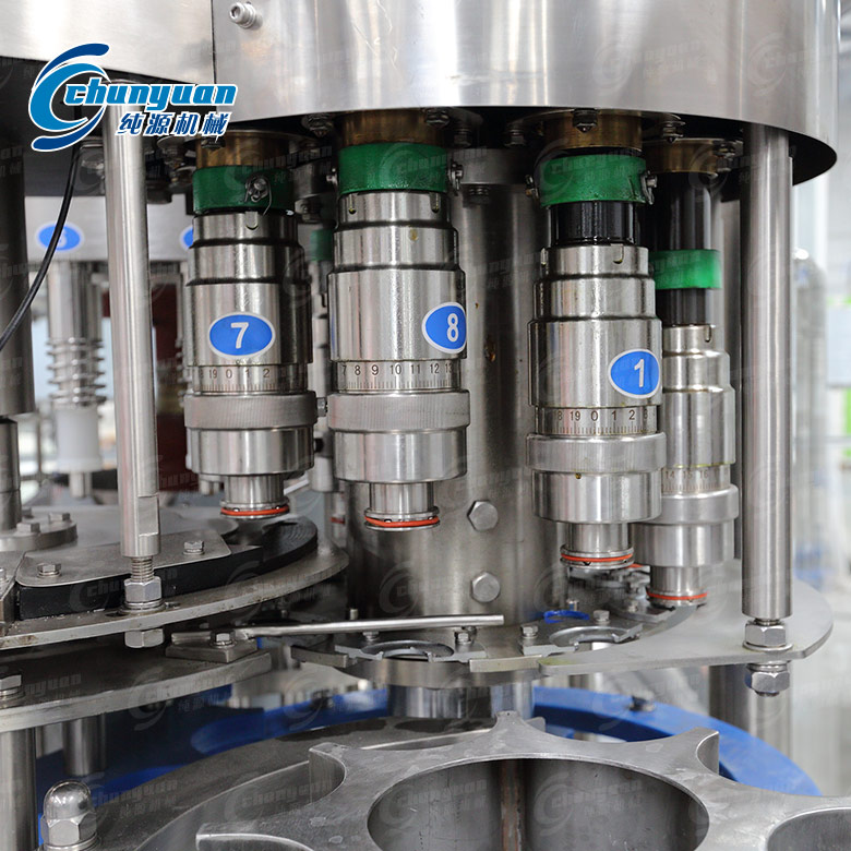 全自動(dòng)純凈水灌裝設(shè)備采用卡瓶頸傳動(dòng)技術(shù),實(shí)現(xiàn)全自動(dòng)沖瓶、灌裝、旋蓋等工序,自動(dòng)化程度高。