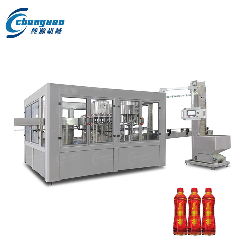 三合一涼茶飲料灌裝設(shè)備集洗瓶、灌裝、封蓋于一體,是以引進(jìn)、消化、吸收國外先進(jìn)技術(shù)為基礎(chǔ),根據(jù)我國純凈水、礦泉水,果汁等飲品的灌裝工藝要求,自行創(chuàng)新設(shè)計(jì)、研制而成的一種具有國內(nèi)先進(jìn)水平的茶飲料灌裝線。