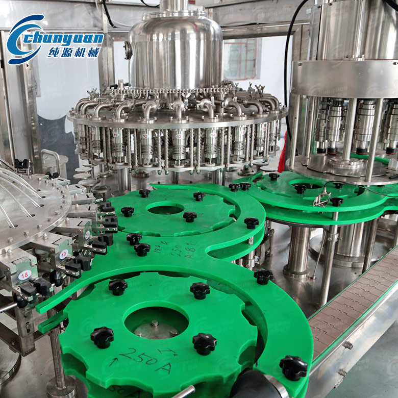 玻璃瓶橙汁飲料機械是純源機械廠家以國外的先進技術為基礎,并根據果汁、茶等飲品的灌裝工藝要求研制而成的。玻璃瓶飲料灌裝機設計科學合理、外形美觀、功能齊全、操作維修方便、自動化程度高,是中小型飲料生產廠家的理想設備。