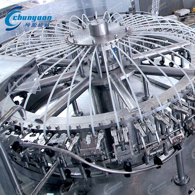 將沖洗瓶、灌裝、封蓋、貼標(biāo)(或旋蓋/噴碼)四大工序集成于一條生產(chǎn)線,結(jié)構(gòu)緊湊,節(jié)省空間,提高效率。